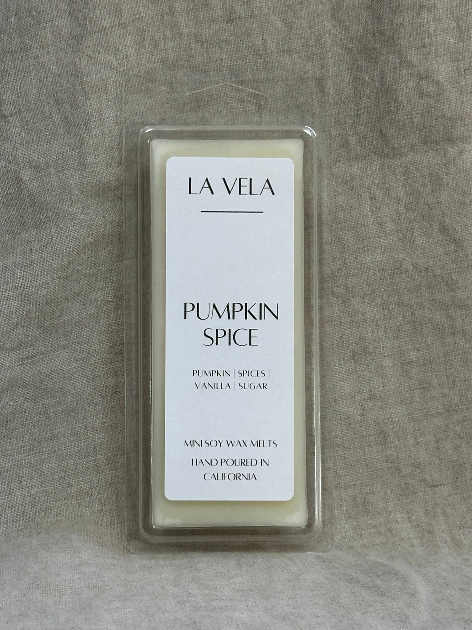 Pumpkin Spice — The essence of fall in a melt. Creamy pumpkin, warm spices, vanilla, and a touch of sugar come together in hand-poured wax melts that fill your home with the comforting aroma of crisp autumn days — all without a flame.