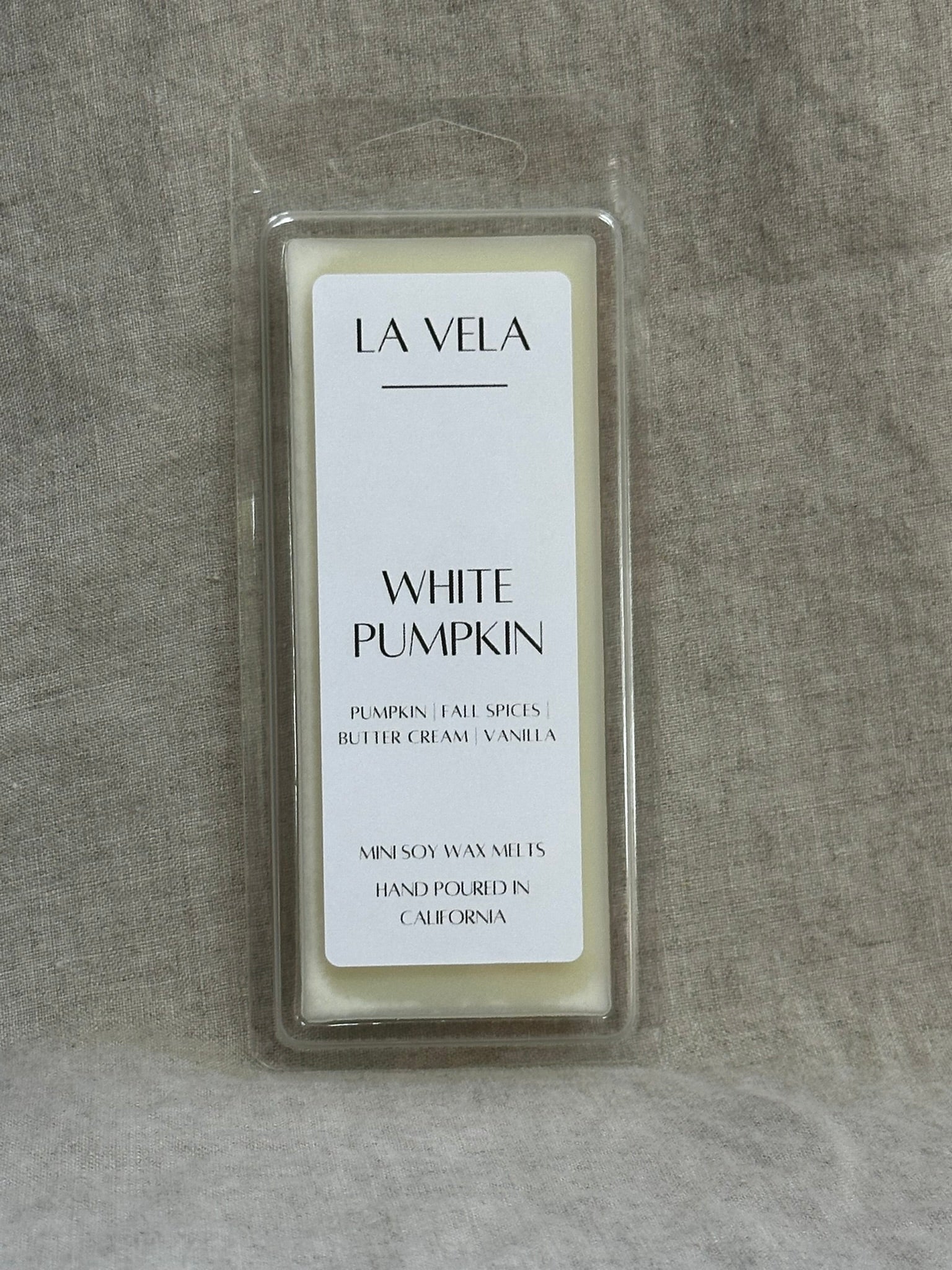 White Pumpkin — Creamy pumpkin blended with warm fall spices, buttery cream, and a hint of vanilla, hand-poured into easy-to-use wax melts. Cozy and inviting, they fill your home with the gentle sweetness and warmth of the season—no flame required.